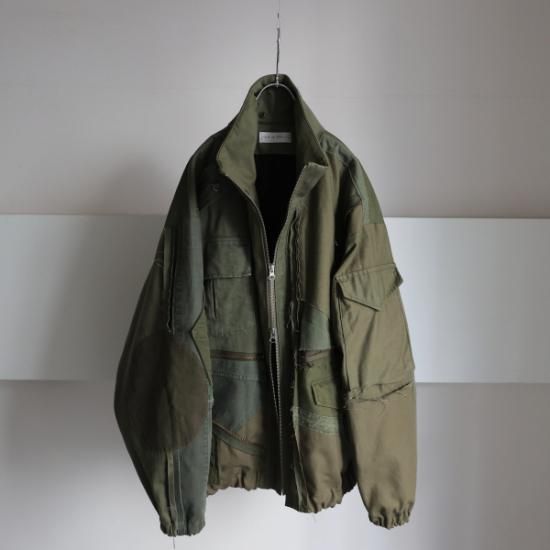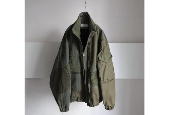 アメリカ軍M65フィールドジャケットを主な素材とし、その他様々な国のミリタリーウェアと掛け合わせ再構築したジップアップブルゾン