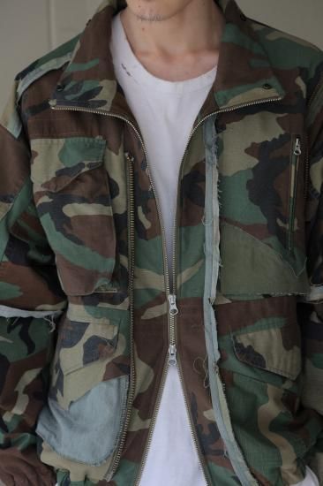made by filum / REBUILD MILITARY BLOUSON "hooked"(WOODLAND CAMOUFLAGE)