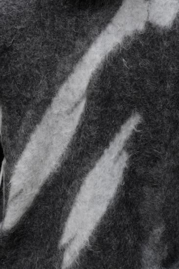 マン・レイの1920年代に製作された映像作品の一瞬を切り抜いたような抽象的なグラフィックをニットに落とし込んでいます。